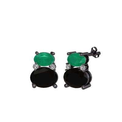 Kök zümrüt, siyah zirkon ve beyaz zirkon 925 ayar siyah rodyum kaplama gümüş küpe