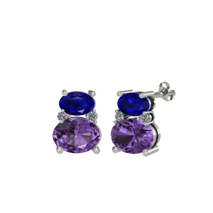 Lab safir, ametist ve pırlanta 8 ayar beyaz altın küpe (0.072 karat)