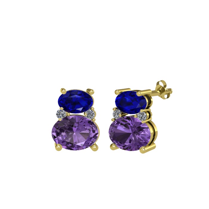 Lab safir, ametist ve pırlanta 925 ayar altın kaplama gümüş küpe (0.072 karat)