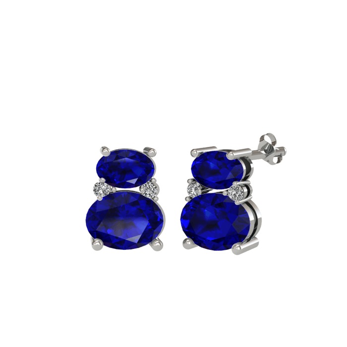 Lab safir ve beyaz zirkon 14 ayar beyaz altın küpe