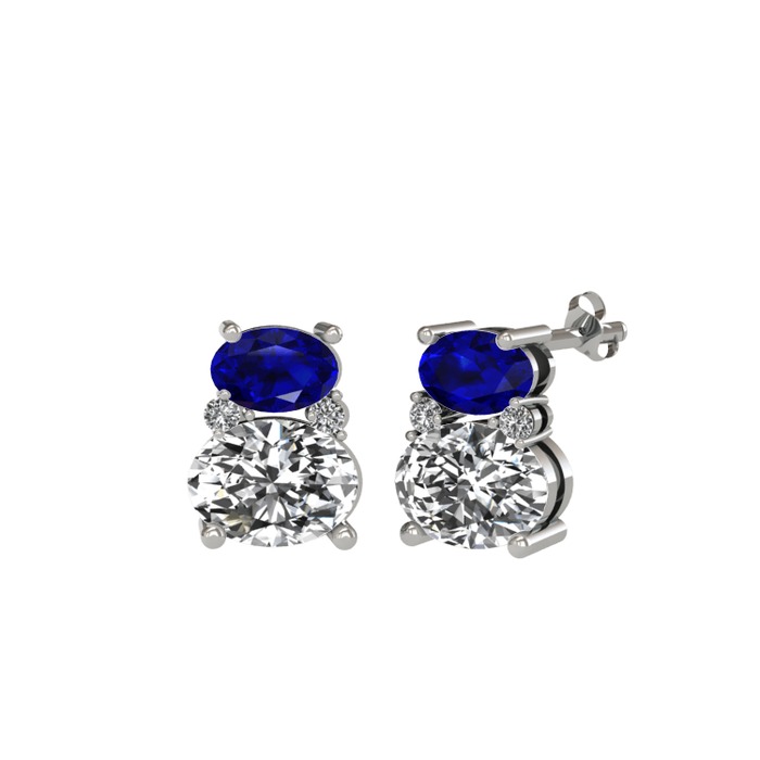 Lab safir ve beyaz zirkon 925 ayar gümüş küpe