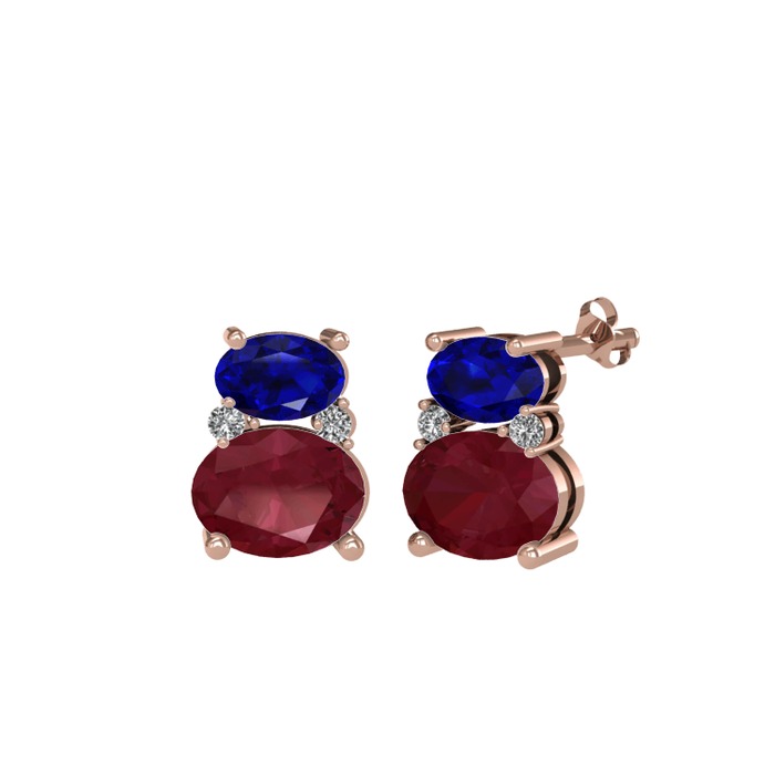 Lab safir, kök yakut ve swarovski 14 ayar rose altın küpe