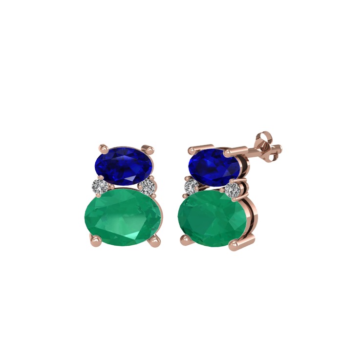 Lab safir, kök zümrüt ve beyaz zirkon 925 ayar rose altın kaplama gümüş küpe
