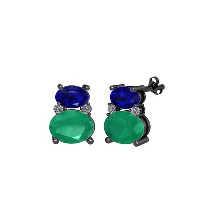 Lab safir, kök zümrüt ve pırlanta 925 ayar siyah rodyum kaplama gümüş küpe (0.072 karat)