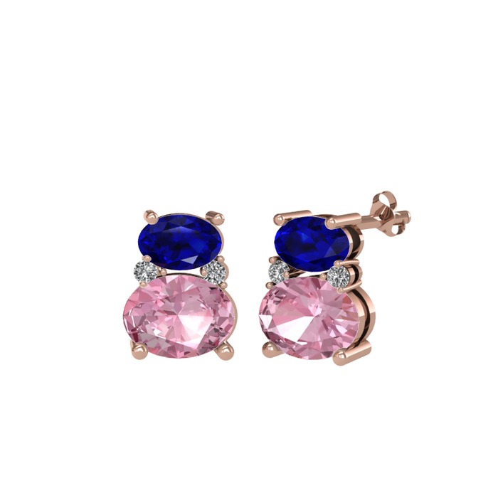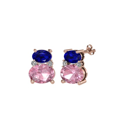 Lab safir, pembe kuvars ve beyaz zirkon 925 ayar rose altın kaplama gümüş küpe