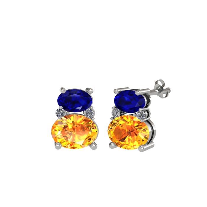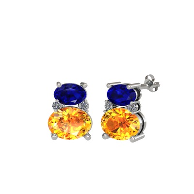 Lab safir, sitrin ve pırlanta 14 ayar beyaz altın küpe (0.072 karat)