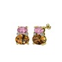 Pembe kuvars, dumanlı kuvars ve swarovski 14 ayar altın küpe