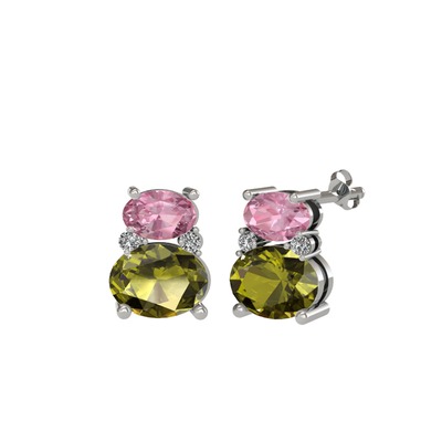 Pembe kuvars, peridot ve beyaz zirkon 925 ayar gümüş küpe