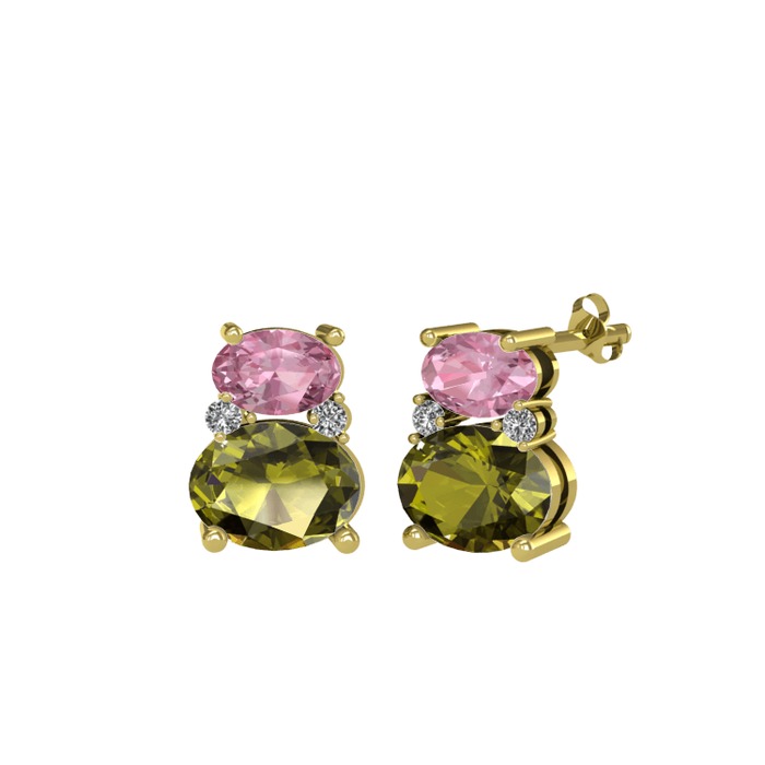 Pembe kuvars, peridot ve swarovski 8 ayar altın küpe
