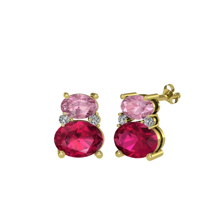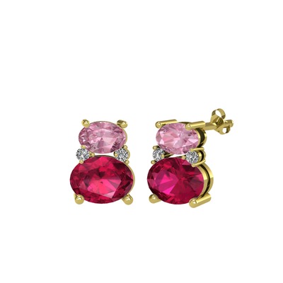 Pembe kuvars, rodolit garnet ve beyaz zirkon 8 ayar altın küpe