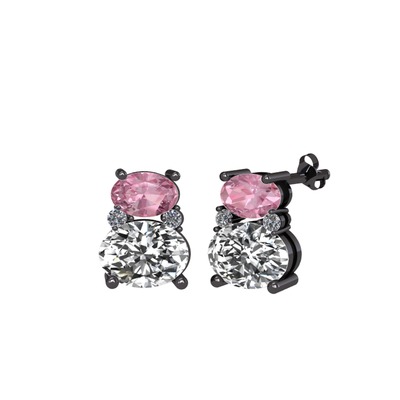 Pembe kuvars, swarovski ve pırlanta 925 ayar siyah rodyum kaplama gümüş küpe (0.072 karat)