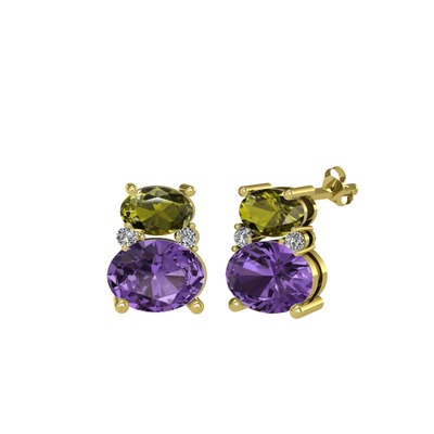 Peridot, ametist ve beyaz zirkon 14 ayar altın küpe