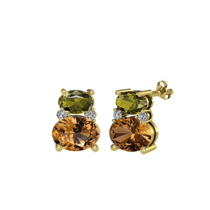 Peridot, dumanlı kuvars ve beyaz zirkon 925 ayar altın kaplama gümüş küpe