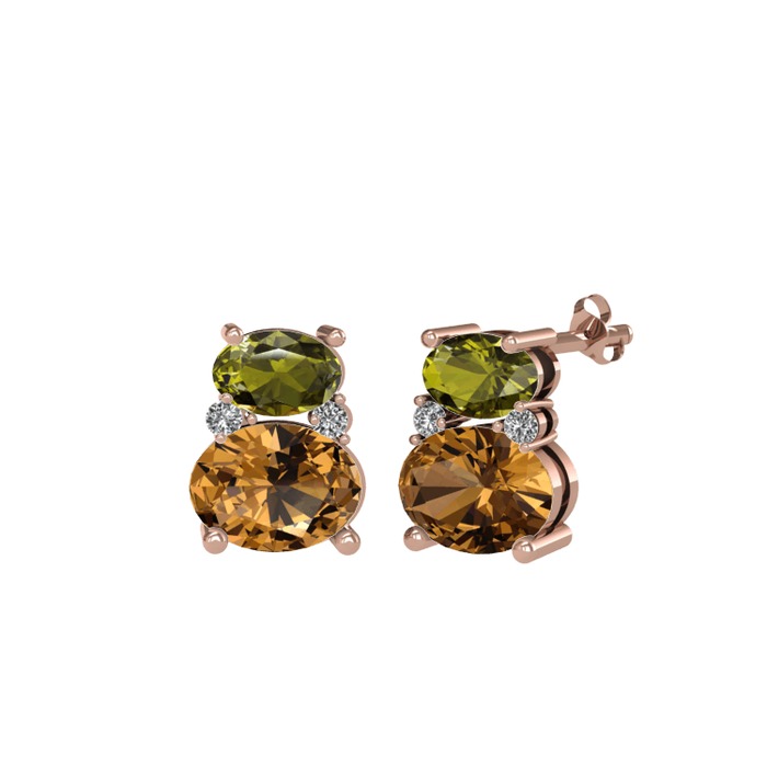 Peridot, dumanlı kuvars ve beyaz zirkon 925 ayar rose altın kaplama gümüş küpe