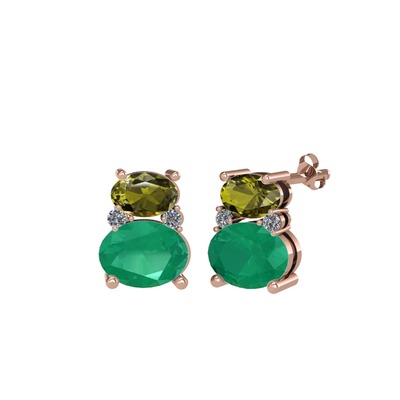 Peridot, kök zümrüt ve pırlanta 8 ayar rose altın küpe (0.072 karat)