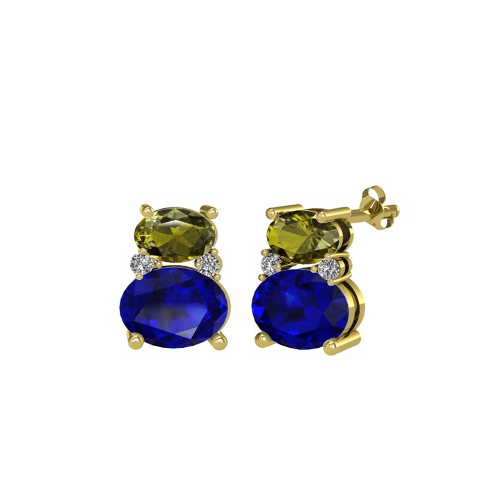 Peridot, lab safir ve beyaz zirkon 18 ayar altın küpe