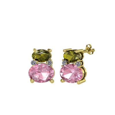 Peridot, pembe kuvars ve pırlanta 14 ayar altın küpe (0.072 karat)