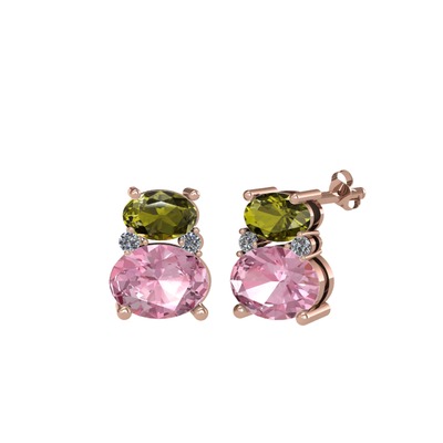 Peridot, pembe kuvars ve pırlanta 8 ayar rose altın küpe (0.072 karat)