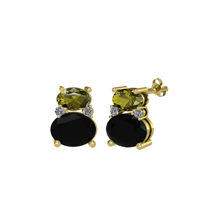 Peridot, siyah zirkon ve pırlanta 14 ayar altın küpe (0.072 karat)