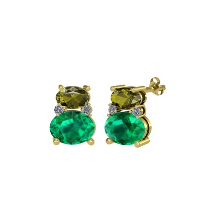 Peridot, yeşil kuvars ve pırlanta 14 ayar altın küpe (0.072 karat)