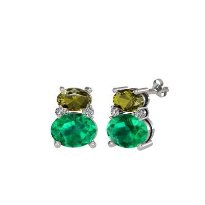 Peridot, yeşil kuvars ve swarovski 18 ayar beyaz altın küpe