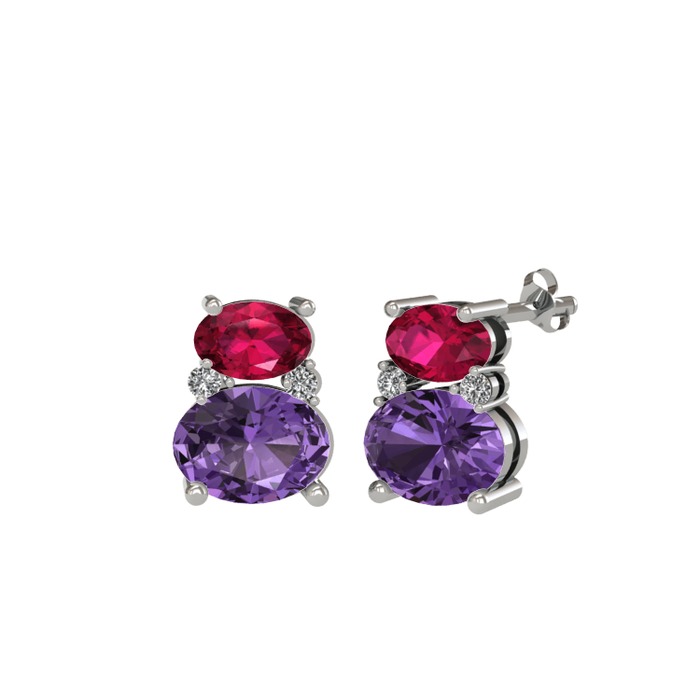 Rodolit garnet, ametist ve swarovski 925 ayar gümüş küpe