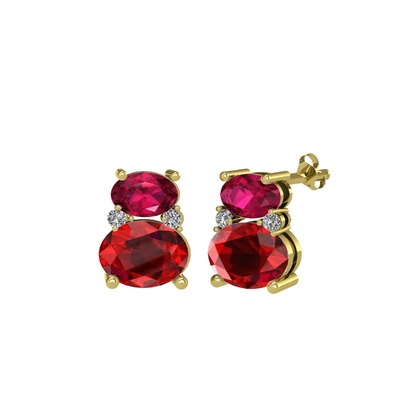 Rodolit garnet, garnet ve swarovski 14 ayar altın küpe