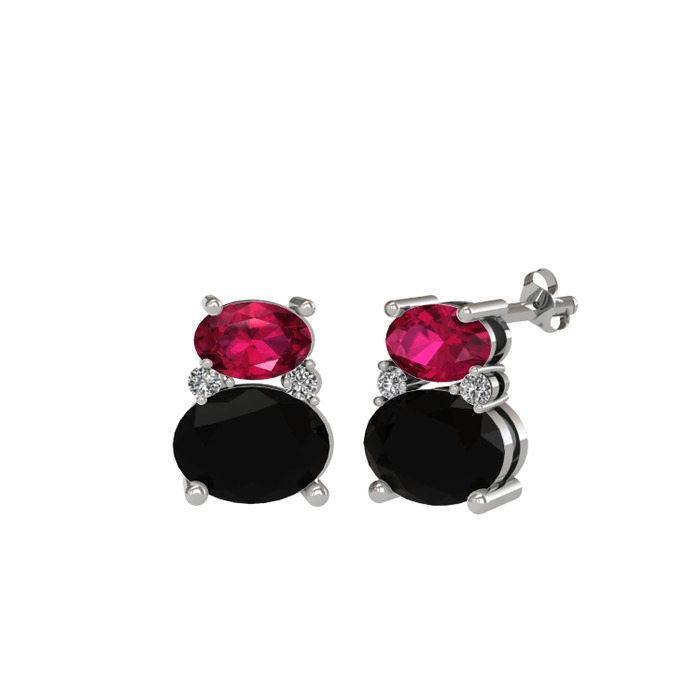 Rodolit garnet, siyah zirkon ve beyaz zirkon 18 ayar beyaz altın küpe