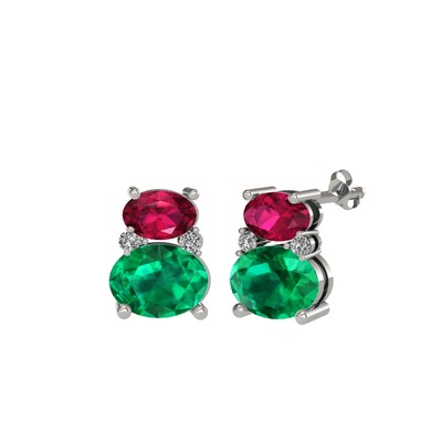 Rodolit garnet, yeşil kuvars ve beyaz zirkon 925 ayar gümüş küpe