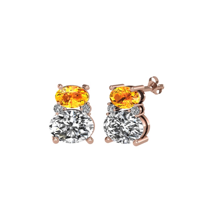 Sitrin, beyaz zirkon ve swarovski 18 ayar rose altın küpe