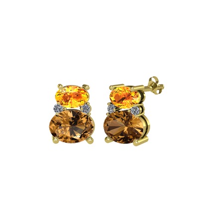 Sitrin, dumanlı kuvars ve pırlanta 14 ayar altın küpe (0.072 karat)