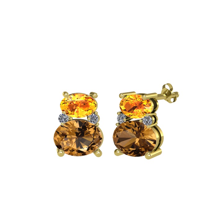 Sitrin, dumanlı kuvars ve pırlanta 925 ayar altın kaplama gümüş küpe (0.072 karat)
