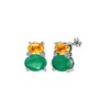 Sitrin, kök zümrüt ve swarovski 8 ayar beyaz altın küpe