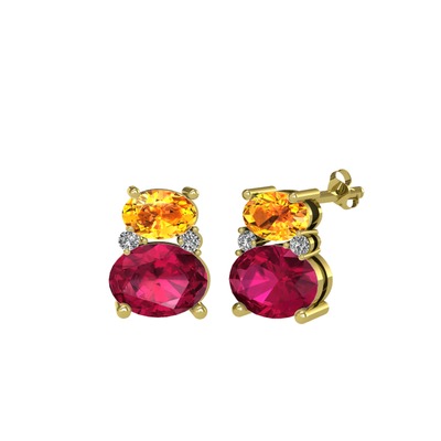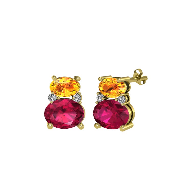 Sitrin, rodolit garnet ve beyaz zirkon 8 ayar altın küpe