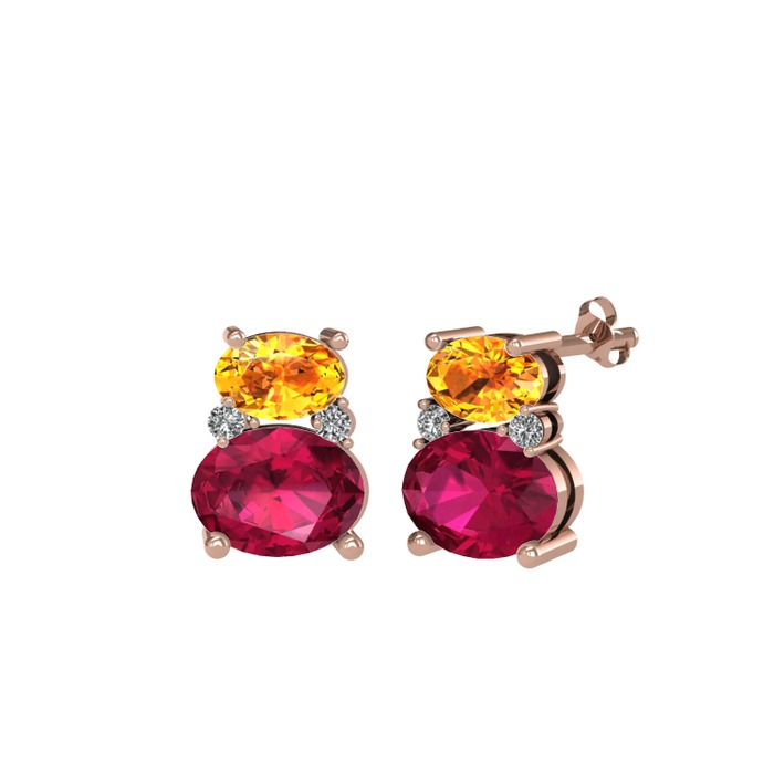 Sitrin, rodolit garnet ve swarovski 14 ayar rose altın küpe