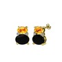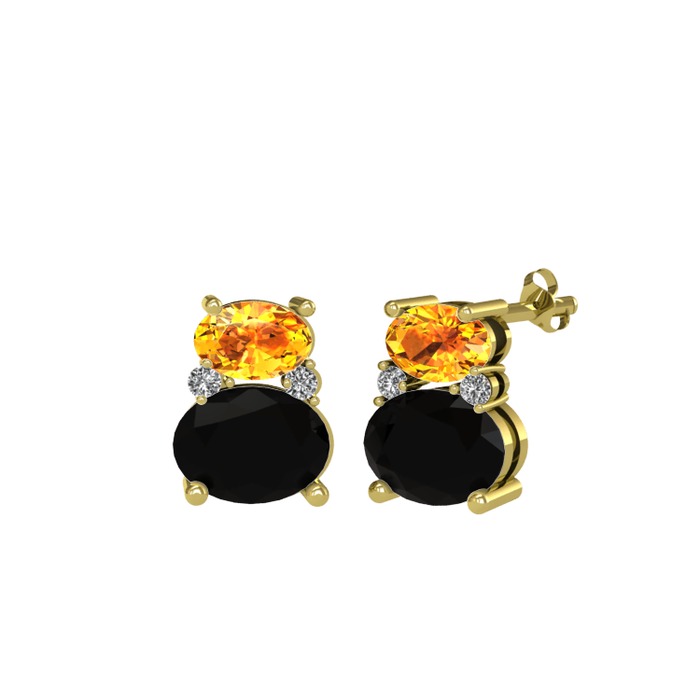 Sitrin, siyah zirkon ve beyaz zirkon 8 ayar altın küpe