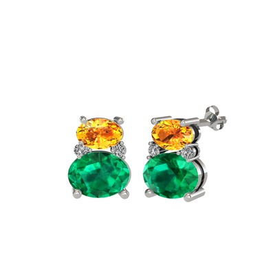 Sitrin, yeşil kuvars ve beyaz zirkon 14 ayar beyaz altın küpe