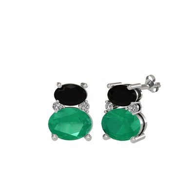 Siyah zirkon, kök zümrüt ve beyaz zirkon 925 ayar gümüş küpe