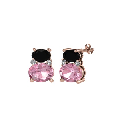 Siyah zirkon, pembe kuvars ve beyaz zirkon 925 ayar rose altın kaplama gümüş küpe