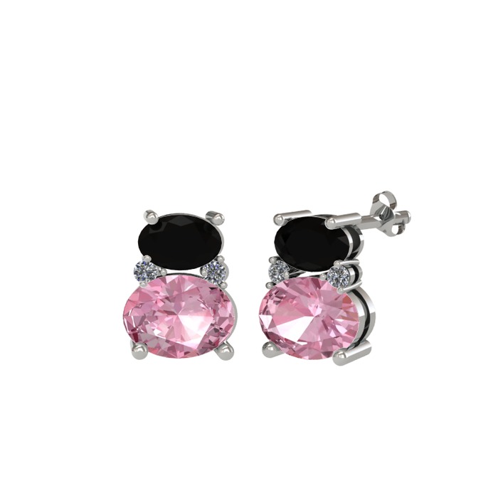 Siyah zirkon, pembe kuvars ve pırlanta 18 ayar beyaz altın küpe (0.072 karat)