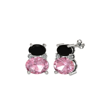 Siyah zirkon, pembe kuvars ve swarovski 14 ayar beyaz altın küpe