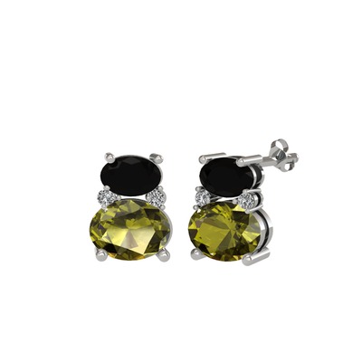 Siyah zirkon, peridot ve beyaz zirkon 14 ayar beyaz altın küpe
