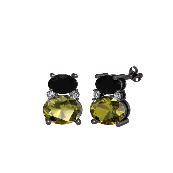 Siyah zirkon, peridot ve beyaz zirkon 925 ayar siyah rodyum kaplama gümüş küpe