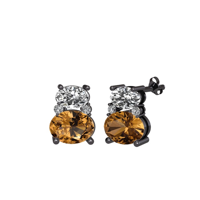 Swarovski ve dumanlı kuvars 925 ayar siyah rodyum kaplama gümüş küpe