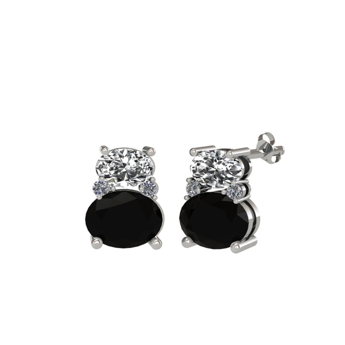 Swarovski, siyah zirkon ve pırlanta 18 ayar beyaz altın küpe (0.072 karat)