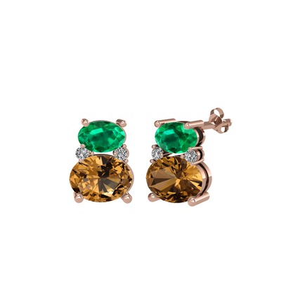 Yeşil kuvars, dumanlı kuvars ve swarovski 14 ayar rose altın küpe