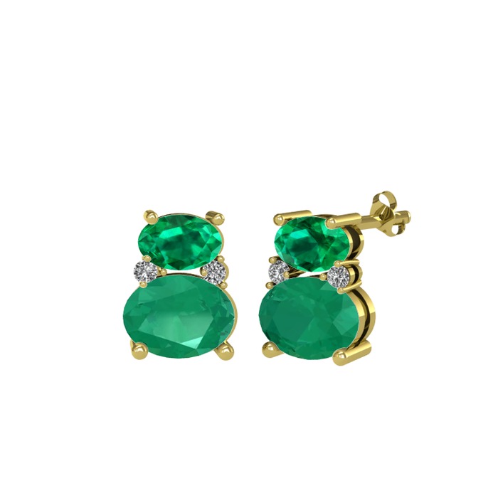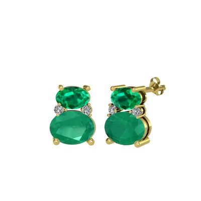 Yeşil kuvars, kök zümrüt ve beyaz zirkon 8 ayar altın küpe