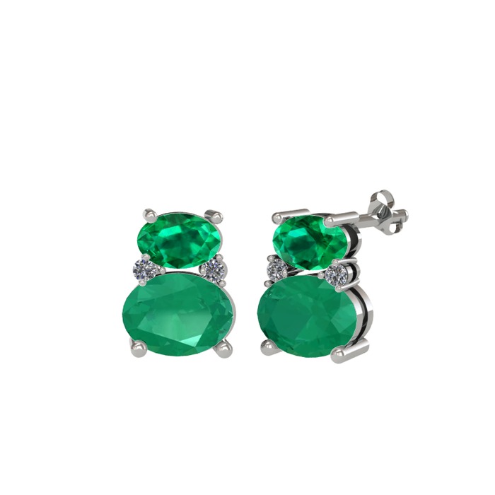 Yeşil kuvars, kök zümrüt ve pırlanta 18 ayar beyaz altın küpe (0.072 karat)