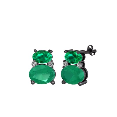 Yeşil kuvars, kök zümrüt ve swarovski 925 ayar siyah rodyum kaplama gümüş küpe