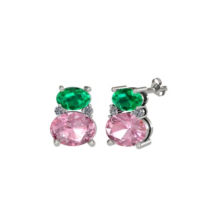 Yeşil kuvars, pembe kuvars ve pırlanta 18 ayar beyaz altın küpe (0.072 karat)